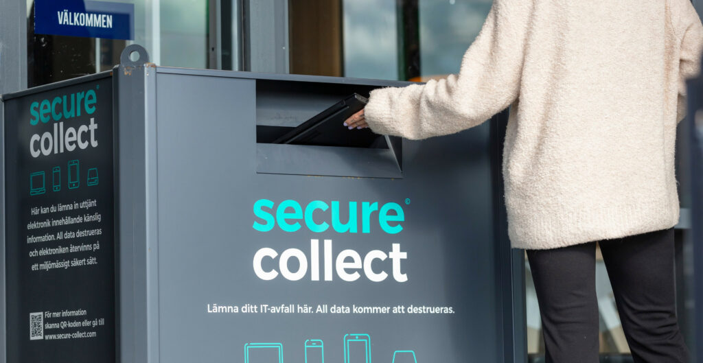 Recipo has developed Secure Collect (LINK), a safe collection specifically aimed at end-of-life products that may contain personal information. Secure Collect is an excellent way to recycle, for example, old mobile phones, laptops, and hard drives. The electronic waste is collected in locked containers that are opened by authorized personnel at our contracted recyclers, who also ensure that all data is erased.